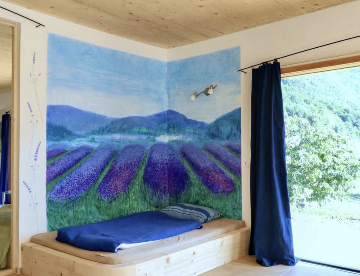 Helle kunstvoll gestaltete Übernachtungszimmer, frische Bergluft, kaum Elektrosmog und eine besonders erholsame Natur, die zu einer gesunden Aktivität einlädt. Siehe auch die Beschreibung auf der Seite Erholung.